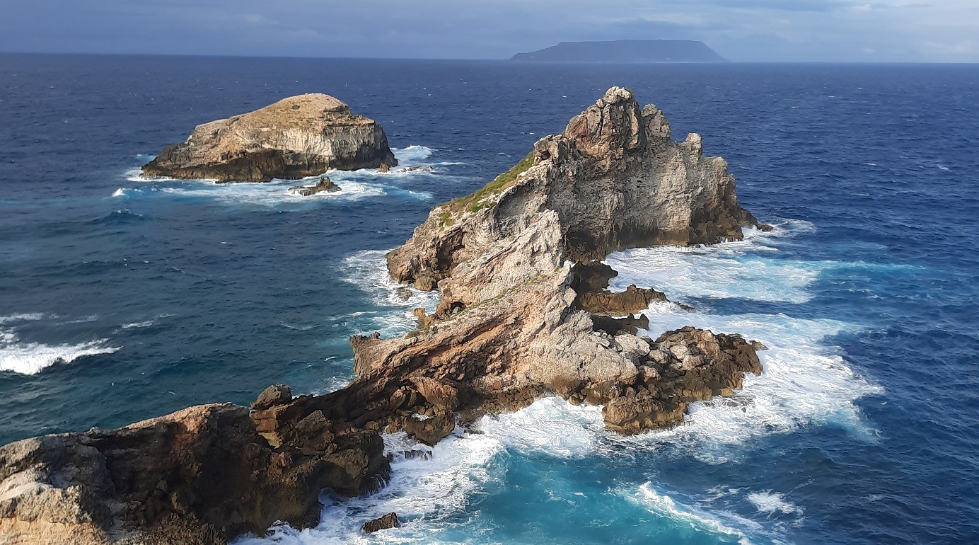 A l'Est, face à la Désirade L'Atlantique offre un autre visage. la Pointe des Châteaux s'offre à vous et vous dévoile des avancées rocheuses , des petites anses préservées et calmes. A l'horizon, l'ïle de La Désirade